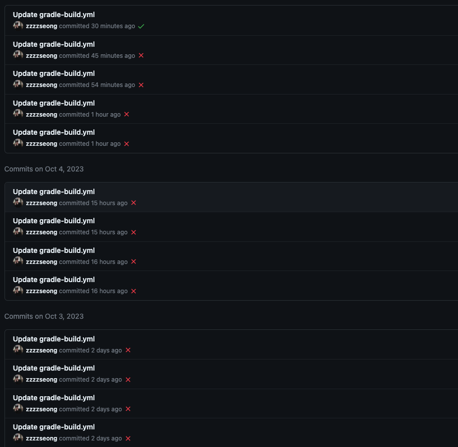 위와 같이 workflow를 작성하고 push하면 정상적으로 동작하지 않을것이다. 이유는 secrets 에 들어가는 값이 모두 비어있기 때문이다. 값들을 하나하나 넣어보도록 하자. 아래와 같이 사용할 secrets 들을 하나씩 넣고 다시 workflow를 돌려보면 잘 될것이다.
