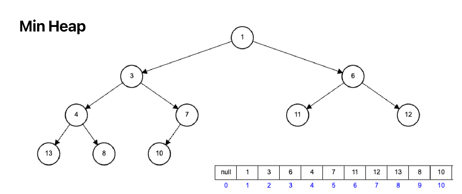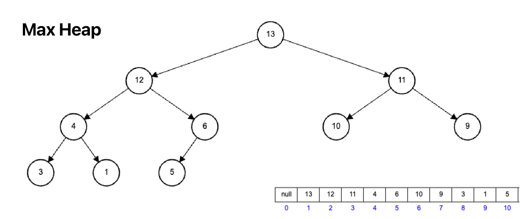 Heap은 루트 노드로 올라갈 수록 저장된 값이 커지는 Max Heap과 작아지는 Min Heap으로 나누어진다. 그림을 보면 딱 봐도 탐색이 쉽지 않을 것 같다는 느낌을 받을 수 있다. 또한, Heap은 Array를 이용해 구현하는 것이 원칙이다. Linked List를 이용하면 새로운 노드를 Heap의 마지막 위치에 추가하는 것이 쉽지 않기 때문이다. 아래는 Max Heap과 Min Heap의 예시이다.