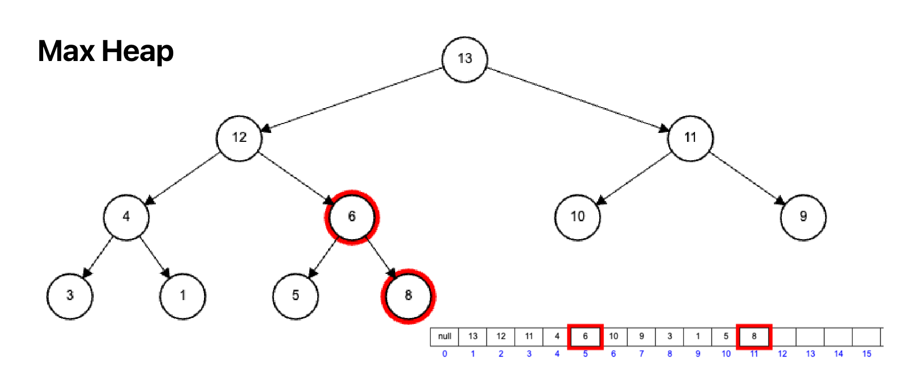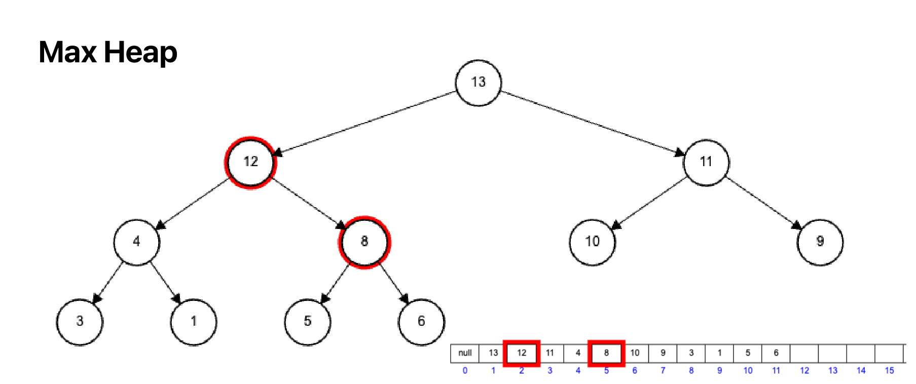 그 다음 다시, 8과 부모 노드인 12의 값을 비교한다. 8이 12보다 작기 때문에 현재 위치를 유지하며 삽입 과정이 마무리된다.