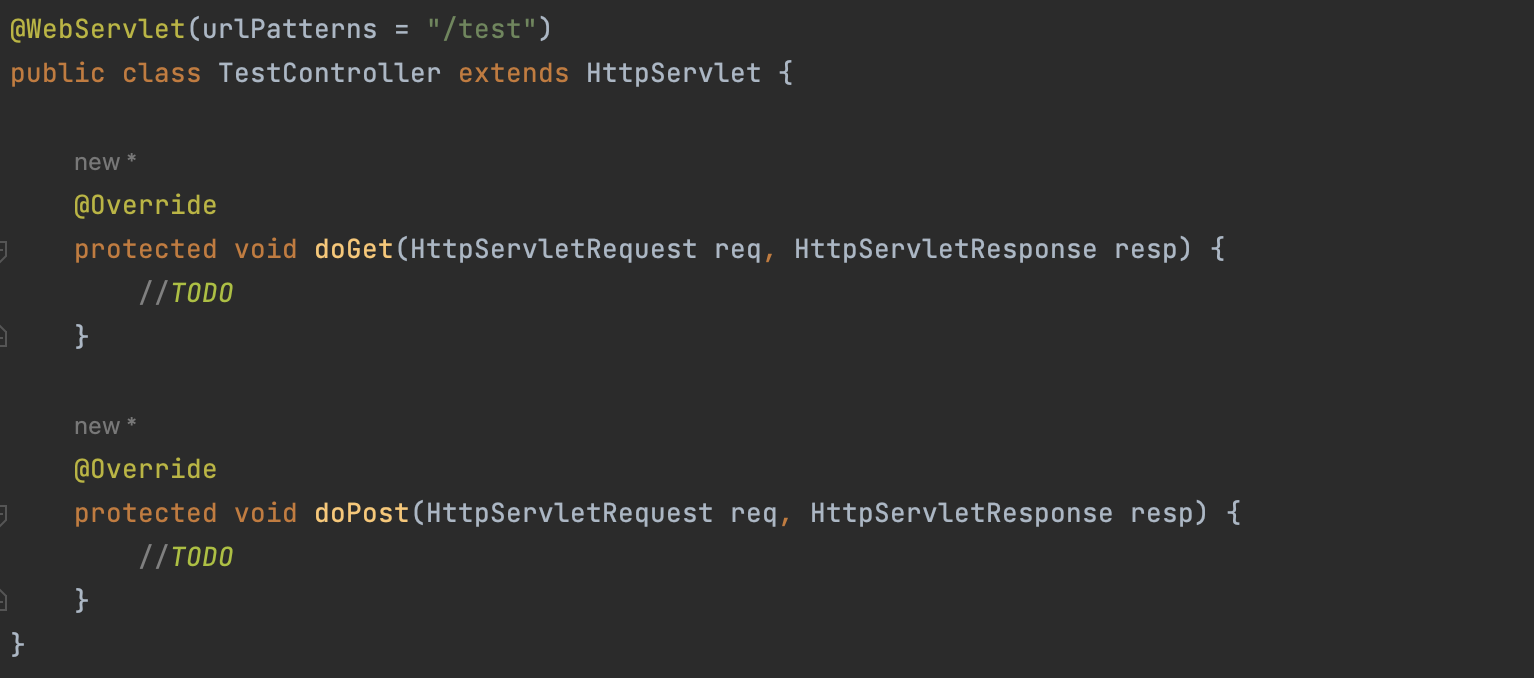 DispatcherServlet이 없다면 아래와 같이 API Path에 따라 모든 HttpServlet을 상속받는 모든 클래스를 선언해줘야한다.