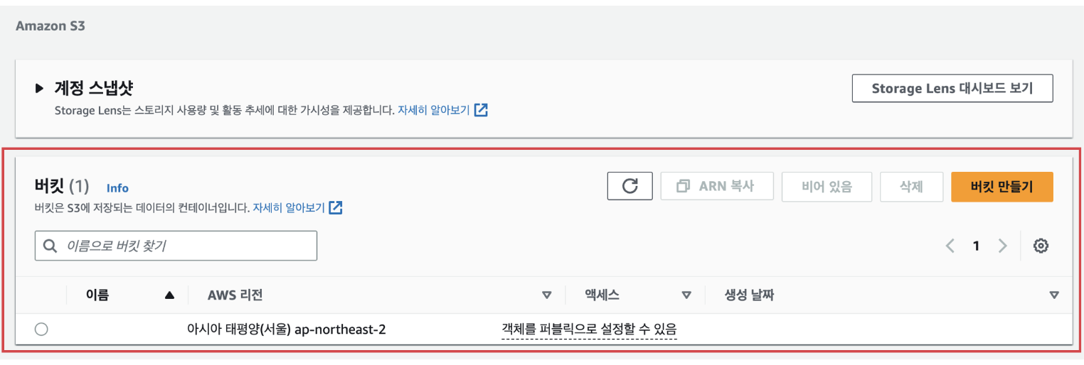 - AWS management console -> service -> storage -> s3 선택