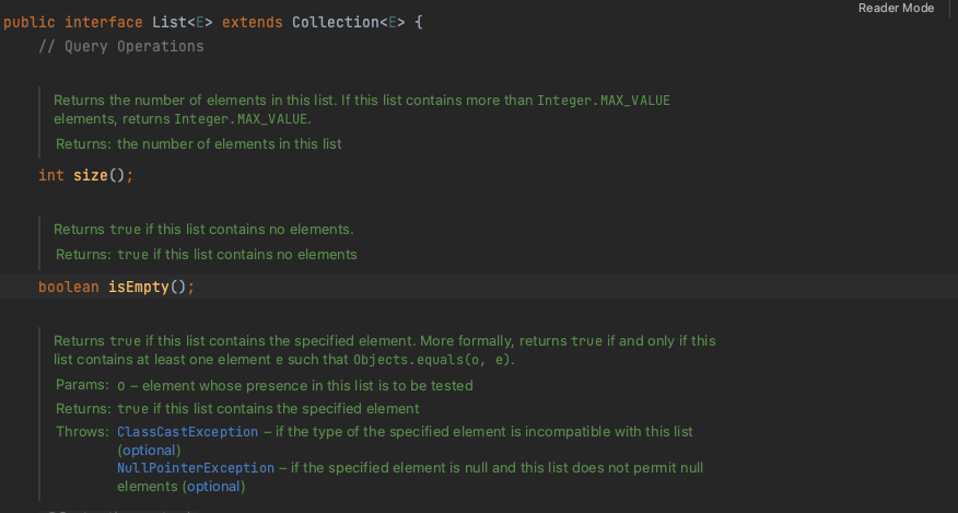 예시로, List 인터페이스를 살펴보면 자주 사용했던 함수들이나 처음 접하는 함수들이 몇몇 보인다. List의 구현체인 ArrayList나 LinkedList를 살펴보면 List 인터페이스 뿐만 아니라 AbstractList를 상속받고 있는데 추후 여유가 된다면 Collection Framework를 뜯어보면서 객체지향적 설계에 대해 자세히 이해해보고 싶다.