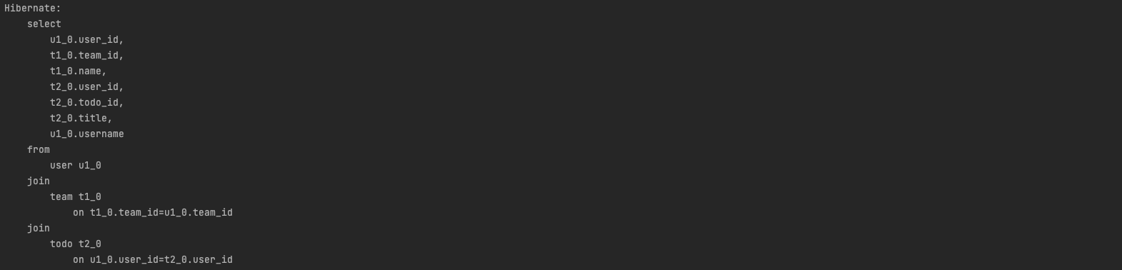 return em.createQuery("select u from User u join fetch u.team t join fetch u.todos ts", User.class)